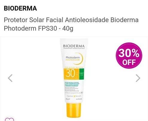 Protetor Solar Facial Antioleosidade Bioderma Photoderm FPS30 - 40g