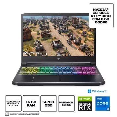 Notebook Gamer Predator Helios 300 PH315-54-70LH i7 11ª Windows 11 Home 16GB 512GB SSD RTX 3070 8GB 15,6